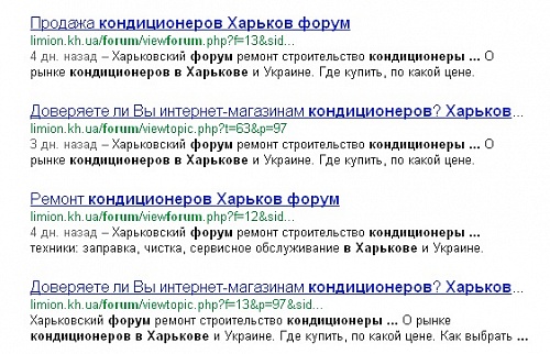 да, по запросу "харьков форум кондиционеры" 4 позиции вподряд, Беларусь, Минск, очень странно...