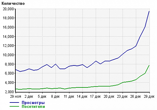 1. Посещаемость зависит от сезона. Сейчас праздники, у всех посещаемость падает.