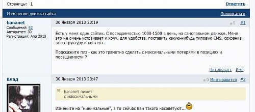 Есть у меня один сайтик. С посещаемостью 1000-1500 в день, на самопальном движке. Меня это не очень устраивает и хочу, для удобства, поставить какую-нибудь типовую CMS, сохранив всю структуру и контент.