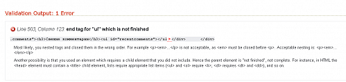 Он пишет в последней строке вашей картинки, в скобках, что некоторые элементы должны содержать другие для правильности - например, ul и ol должны содержать li, без этого не есть гуд.