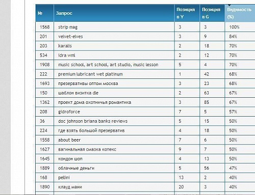Мой сайт занимает приличные места по запросам на адалт тематику.