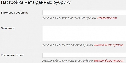 Но! В плагине можно прописать ключевики только для Сайта в целом (гл. страница), для Страниц (В случае добавления новых страниц из меню Страницы -> Добавить новую) и для отдельных записей (Запись -> Добавить новую). Отдельно для рубрики эти параметры никак не задать.