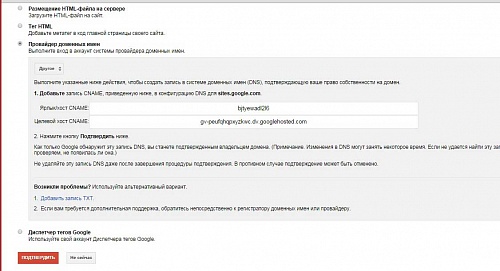 Так быстро получил комментарии, хороший форум, быстрее чем от своей служб поддержки клиентов)) к сожалению на "Google site" нельзя загрузить html файл на сайт для подтверждения