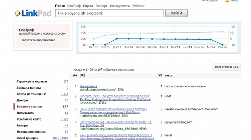 Здравствуйте. Ребят, помогите разобраться в LinkPad, пожалуйста. Вот график количества внешних ссылок на сайт. У меня два вопроса: