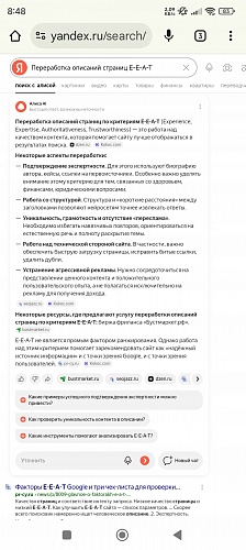 Похоже, Яндекс решил не отставать и агрессивно расширил блоки "Нейро". Теперь по многим запросам (особенно "как выбрать", "инструкция", "отзывы") нейросеть выдает огромную простыню текста прямо в поиске, собранную... правильно, с наших сайтов. Ссылка на источник там есть, но она такая мелкая, что кликают по ней единицы (CTR ниже плинтуса).