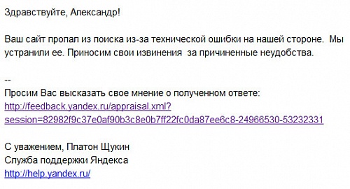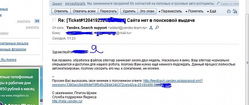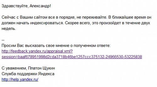 22 мая 2012 г., 21:20 пользователь Yandex.Search support <addurl@yandex-team.ru> написал: