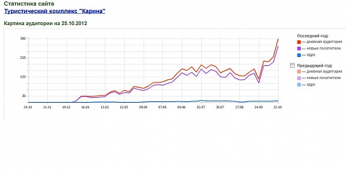Результаты: Повышение тИЦ с 10 до 40 Посещаемость: увеличилась с 20 до 150 (в среднем) И самое главное, объект работает со 100% загрузкой с апреля 2012 года, преодолена точка безубыточности. |