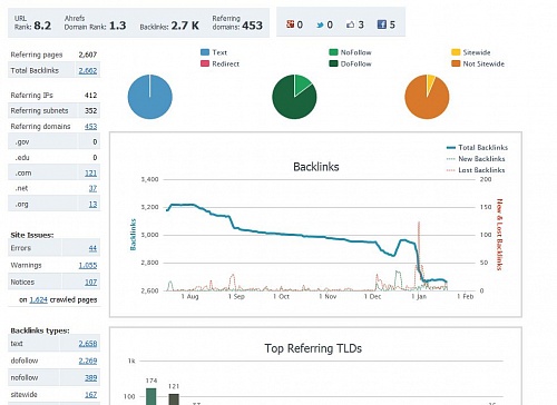 Самый быстро реагирующий сервис подтверждает резкое обрушение ссылочной массы в начале января. |