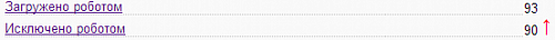 Ну все правильно, было допустим 89 страниц, стало 90 стрелочка и появилась что увеличилось их количество, если уменьшатся появится зеленая.Они и исключены из поиска, потому что на них ошибка.