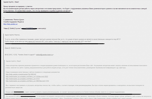 Иван Иванов, Немного не так сказал, поддомены получили бан за АГС на основном.