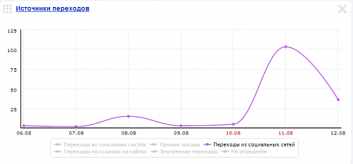Последние 2 дня появилась какая-то не здоровая активность с соцсетей. Очень много переходов с них. Продвижение не делал, рекламу не давал.Сегодня предполагается (по данными метрики) еще больше переходов.