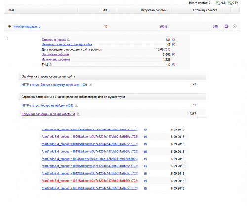 прошу помощи! Ситуация следующая. Интернет магазин имеет ассортимент ~10тыс наименований до недавнего времени практически все товары были в индексе. Но с недавнего времени товар начал вываливаться из индекса яднекса, да и гугла тоже. Сейчас вообще осталось 848стр из 10тыс В тех страницах, которые яндекс вм показывает как не разрешенные к индексу страниц с товаром нет, но есть очень странные строки такого плана (и их очень много) www.hpi-magazin.ru/cart?add&id_product=1000&token=ef3c7e1204c147bbb011a9b65cb7025e (что это я не понимаю, но формально на корточку товара похоже, хотя страница с этим товаром выглядит www.hpi-magazin.ru/off-road-1-10-1-12/1000-schiny-sc-1-10-blitz-attk-s-compound-2scht-myagkie.html)