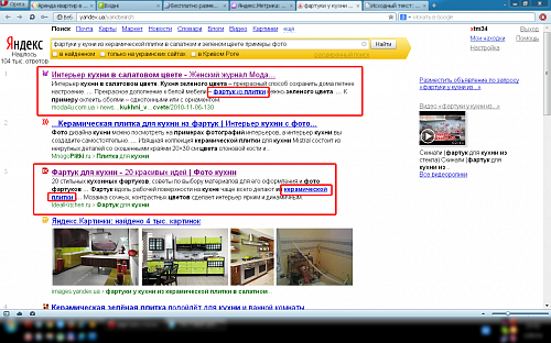 Да и скриншот тому подтверждение. Я ищу четкое фартук из керамической плитки, а мне подсовывает не пойми зачем линку на "просто керамическую плитку". Все равно что я пойду на базар за тыквой, а мне предложат дыню - обе желтые ведь =)