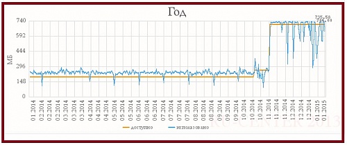 Еще предположение: что-то с хостингом. Два месяца назад, то есть в середине ноября 2014 г., я перешел на самый высокий тариф - "1С-Битрикс" в Ру-Центре. Ранее оперативная память была 250, и использование ресурсов иногда зашкаливало, превышало. Чтобы этого не было, я и перешел на самый большой тариф, оперативная память стала 730, то есть я думал, что будет большой запас. Но, к моему удивлению, и размер потребляемых ресурсов подскочил одновременно и и снова полностью используется, даже иногда шкалит.