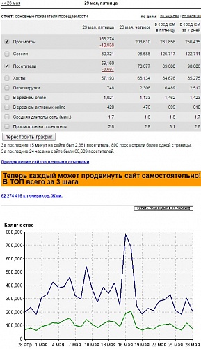 По графику ещё не так заметно, но сайт уже не находиться в ТОПе даже по названию домена. |