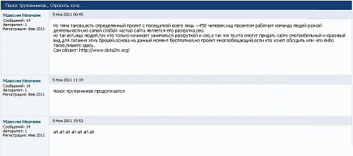 ну так вот,ищу людей,тех кто только начинает заниматься раскруткой и сео,а так же те,кто смогут придать сайту смотрибельный и красивый вид,для латания этиъ брешей,основа на данный момент бесплатная,но проект многообещающий,если кто хочет обсудить или что-либо такое,пишите здесь.