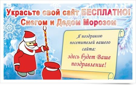 Как это будет? Очень просто! Открывая главную страницу вашего сайта, ваш клиент обнаружит приятную перемену: на фоне привычного меню будет кружиться сказочный «снег» и появится сам… Дед Мороз, да еще и со свитком в руке! Кстати, на свитке можно написать любой поздравительный текст – в стихах или в прозе. «Вау-эффект» вашего сайта просто обеспечен, не говоря о его улучшенной динамике!
