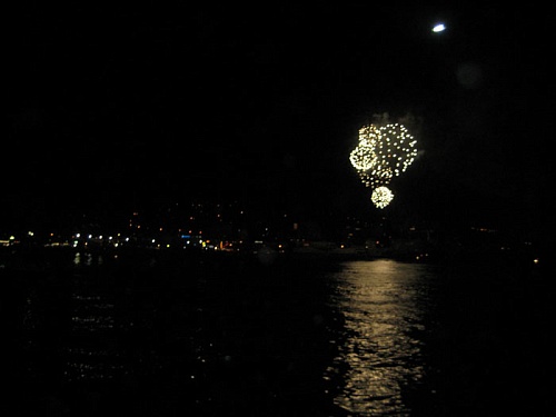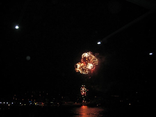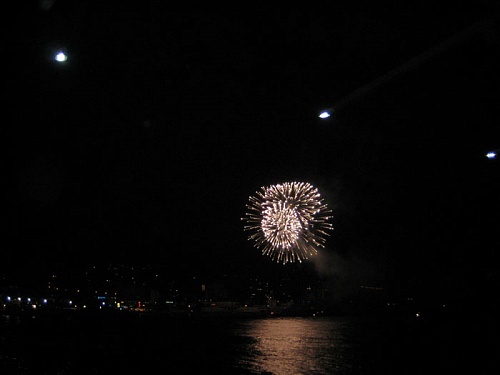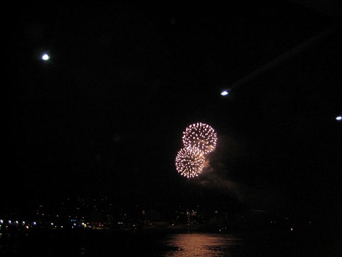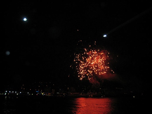 Ну у нас праздник удался, чувствовался по-настоящему, три часа бесконечного драйва. У меня создалось такое впечатление, что на набережной собралось всё СНГ, открыли сцену и включили хорошую музыку, сам салют красивый, но фотки отвратительные, поэтому прошу прощения за качество, камера всё-таки не для ночных вылазок.