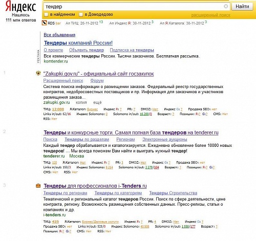 Копаюсь в поисковиках по своей любимой теме "тендер" и вот что вижу http://yandex.ru/yandsearch?text=%D1%82%D0%B5%D0%BD%D0%B4%D0%B5%D1%80&lr=10725