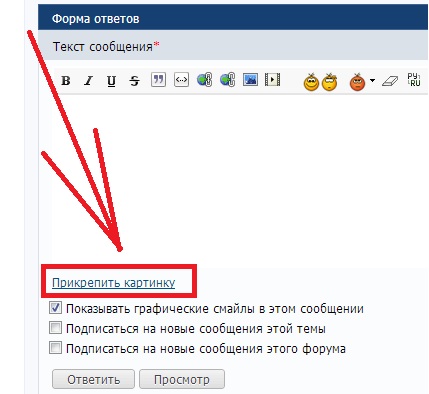 На скриншоте ниже будет показано, как именно можно прикрепить картинку (изображение) к сообщению (в теме, сообщении) на форуме СУПР.