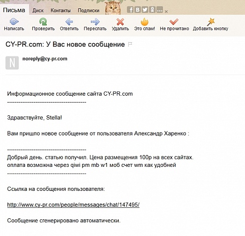 Ко мне в личку написал мошенник) Увидел, что интересуюсь размещением статей. Попросил 100 руб.