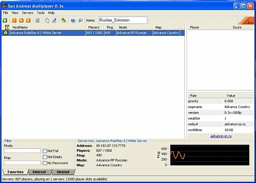 Хорошо что вы сказали что список серверов хранится в файле USERDATA.DAT[COLOR=#373737] Я решил сделать так, клиент игры не трогать.. А склеить файлы.. то есть, клиент + USERDATA.DAT.. Будет установочный файл клиента и сам файл с серверами.. Файлу с серверами, я сделаю автоустановку /тихую установку/, чтобы она копировалось в папку C:\Documents and Settings\xxx\Мои документы\GTA San Andreas User Files\SAMP, и склею с клиентом.. То есть, посетитель качает клиент, запускает, по тихому ставится сервер и устанавливается клиент [/COLOR]