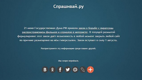 Хе-хе .. .а я то думал они лохи там в думе... ан нет за свою Ж... переживают революций через инет очкуют ... За соц. разнь блокировать видать как то не с руки (зажимание свободы слова и т.д. и т.п.) плюс на основании госудаственной коммисии надо делать вот и приняли антипиратский закон... что типа мы здесь типа ни при чем .. это Вася Пукин со своим лажовым клипом заяву накатал че vk заблочили ![]() ![]() ![]() |