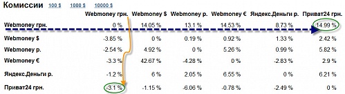 Александр а скажите какой процент на вывод гривен? просто таблицу можно читать по разному