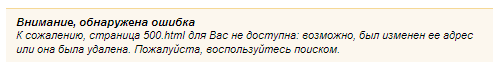 К сожалению, страница 500.html для вас недоступна: возможно, был изменен ее адрес или она была удалена. Пожалуйста, воспользуйтесь поиском. |