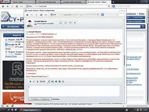 Всем привет! Я очень извиняюсь если сделал тему не там где нужно, но у меня проблема возникла. В общем практически через день мне постоянно приходят уведомления на почту гугла, о том что здесь мне пришло новое сообщение. Ну я как правило иду смотреть что и кто мне написал? и За все время что зарегистрирован не кто не написал нормальное сообщение, все то ссылками менятся(А у меня вап сайт кому интересно менятся с вап сайтам), то пишут о заработке и вставляют уйму ссылок, а теперь вот оказалось я наследник гиганских просто денег. В общем хотел бы узнать как избавится от такого рода писем?