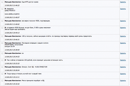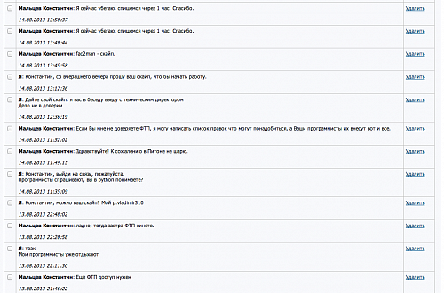 Я не хочу портить его репутацию, так как в его топике много положительных отзывов, я просто думаю, что он не выполнил работу на те деньги, которые я ему заплатил в 100% предоплату.Во вложении наша переписка и фото его ТЗ