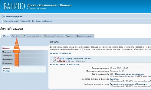 Нажимаешь "Профиль" и видишь такое (как на скрине) и просто заполняешь.Если хочешь попасть быстрее в поиск, нужно, чтобы поиск узнал о тебе быстрее, а для этого нужно выложить на сайте хотябы одно сообщение.
