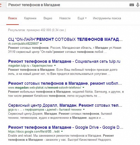 Вы это видели? Ремонт телефонов в Магадане ушёл в ТОП 1 - прямо на первую строчку, даже если выйти из гугл Аккаунта!