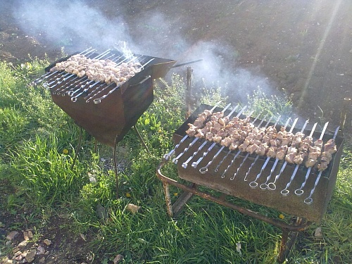 С февраля всего 2 раза делали шашлыки, всех никак не собрать! Вот ждем 9 мая и на дачу, шашлычок, банька, эх...