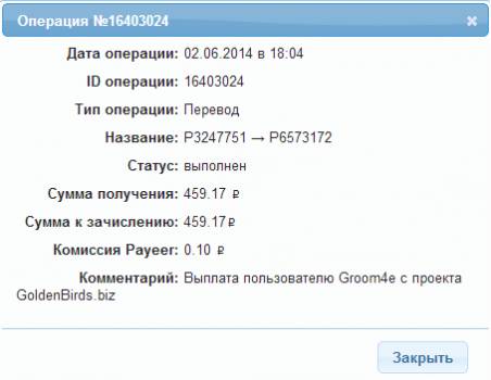Скрин выплаты , в проекте 2а дня , вкладывал - 150 рублей , на приобретение птиц