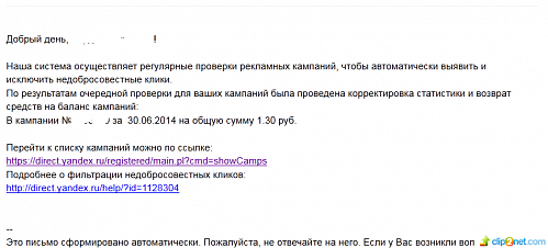 При том, что есть подозрения на скликивания, отнюдь, не в масштабах 1 рубля)) В общем, спасибо за возврат