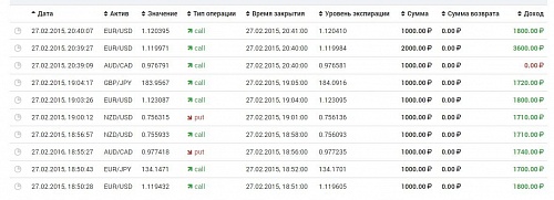 Многие слышали про «Форекс»? Так вот, речь сейчас пойдет не о нем! Бинарные опционы, вот то, на чем сейчас зарабатывает все больше людей. Бинарные опционы гораздо проще и понятнее «Форекса». Чтобы получить прибыль на бинарных опционах, достаточно угадать, куда пойдет цена актива: вверх или вниз, и на этом весь ваш труд заканчивается! Ваша прибыль от верно угаданного направления составит ДО 92% от ставки. Поставили 100$ - получите 192$, и это всего лишь за 60 секунд!