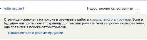 В ЯВ при проверки sitemap.xml выдаёт "Страница обходится роботом, но отсутствует в поиске." Так и должно или она должна быть в индексе? Вылезло после переезда на https