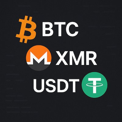 ✔ Поддержка валют: BTC, ETH, USDT (TRC-20 / ERC-20), XMR и другие