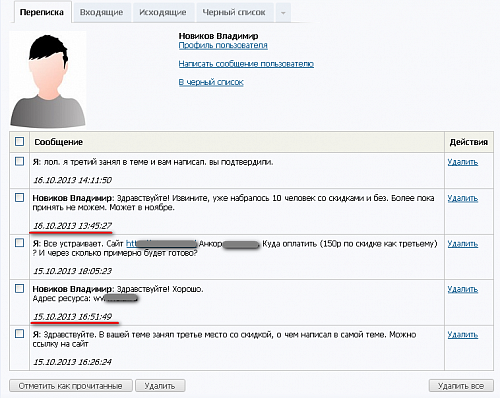 Новиков Владимир: Здравствуйте! Видим Ваш перевод на вебмани. Благодарим. Но к несчастью набрали уже людей... с форумов. Уже набралось 10 человек со скидками и без. Более пока принять не можем. Может в ноябре. Но вряд ли. Сможем или отправить Вам обратно на Ваш счет 150 р. и нет проблем. Или можем предложить Вам ресурс: www.unionstore.ru по этому же тарифу на тех же условиях! Ждем ответа! С уважением! Попросил возврата wmr, ждем... |