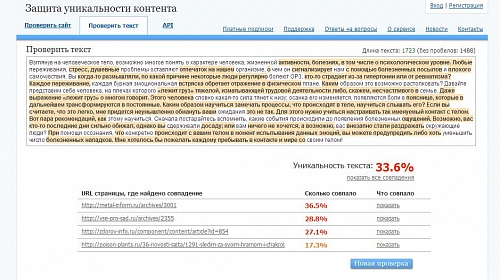 Теперь ТС мне начинает елозить мол он меряет уникальность текстов ТОЛЬКО ДО попаданиях их в индекс, когда попадает в индекс это не его проблема и вообще не показатель.