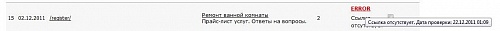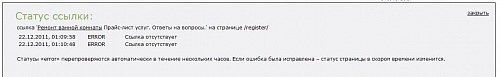Это что то с чем то :-) Решил сегодня посмотреть а чей то у меня ссылки в error выпадают и выпадают, открываю список, жму на проверить (на надпись ERROR) проходит проверка и пишет мол ссылка не найдена на странице.. думаю что за фигня.. захожу по ссылке на страницу..... И что я вижу ? (угадайте) :-)