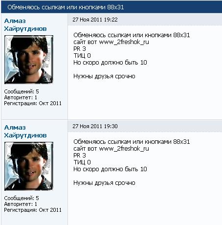 сайт вот www_2freshok_ru PR 3 ТИЦ 0 Но скоро должно быть 10 Нужны друзья срочно |