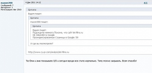 вам же говорили что рано переживаете,сайту то всего 8 дней)