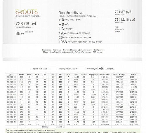 на сайте средняя посещаемость 1150 - 1500 в сутки клик срабатывал единожды для уникального ИП в день. лил на смутс, но видимо руки у меня кривые - по нулям! в смысле денег ![]() сливать на кликкэшм не рискнул, так как думаю что это 100% бан ака мож кто подскажет куда ещё можно адалт лить? |