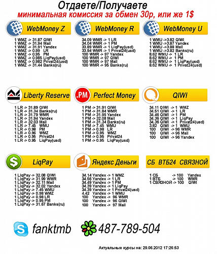 Минимальная комиссия за обмен 30р, или же 1$
