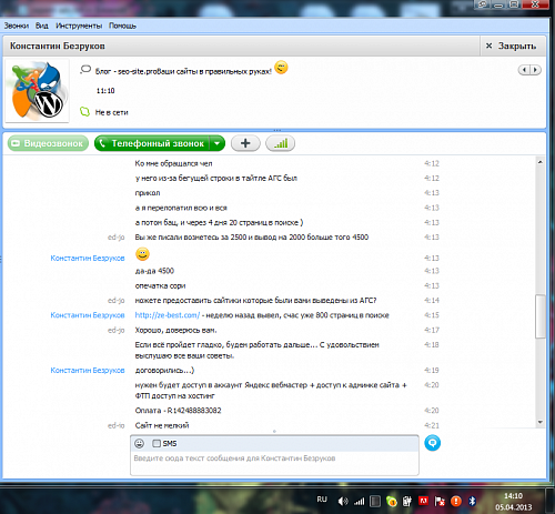 ТС получил денежку и пропал к чёртикам... Кидала ещё тот... Гарантировал вывод из АГС 90% =) Сайтик у меня неплохой решил обратится за (консультацией) что нить исправить... В принципе вот переписка в