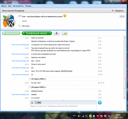 [img]s020.radikal.ru/i702/1305/93/c0133753aa7a.jpg[/img] [img]s005.radikal.ru/i211/1305/2d/9bd1b0ecca2c.jpg[/img] Потом зашел на сайт ТС, от туда взял почту и написал по почте... Он извинился и сослался на то что на его комп была хакерская атака )))) и все удалилось. Попросил снова доступ к сайту и обещал в тот же день сделать, но воз и ныне там... |