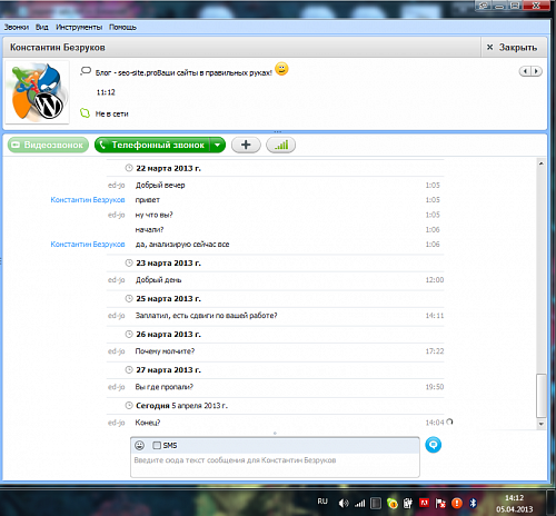 Подтверждаю. !!!! Очевидно кидалово.!!! Работаю с ним с Января 2013, Оплатил 7000 руб. Хотел новый сайт т.к. старый ему не нравился. Вначале начал делать. Кроме одной страницы зоголовка-ничего !!! В Итоге сделал всё сам. Иногда давал консультации. Уже месяца три не отвечает !!! Находится в Харькове. Видно надо попросить кое =кого чтобы зашли в гости.
