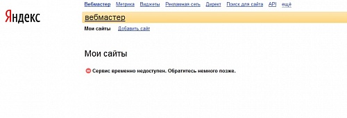 У меня Яндекс Вебмастер вообще перестал работать. Пишет: Cервис временно недоступен. Обратитесь немного позже.